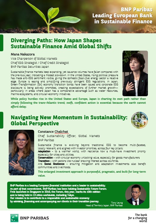 BNPパリバ、「第10回サステナブル・フューチャー・フォーラム」を東京で開催